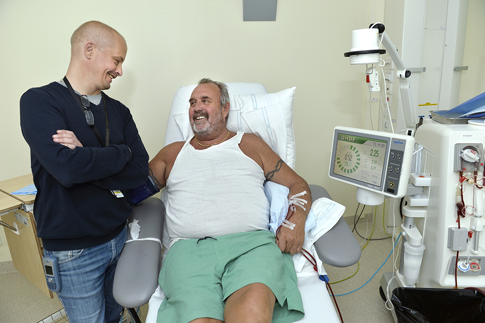 – Här blir vi som arbetskamrater, jag känner mig inte som en patient utan vi diskuterar fram olika lösningar tillsammans. Det känns som om jag jobbar i ett team om dialysen. Det är till och med så att jag längtar efter att komma hit. Måendet och kamratskapet här är guld värt, säger han.