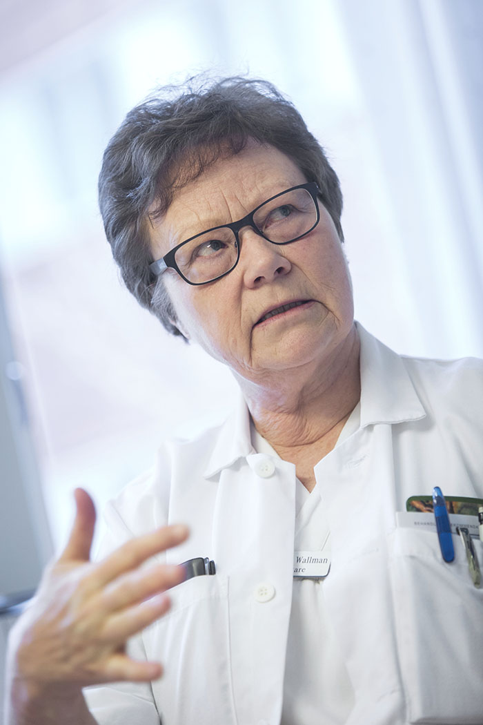 Överläkaren Kristina Wallman tycker att det talas alldeles för lite och tyst om sjuksköterskebristen på sjukhusen. »Det är ju ett problem i hela landet. Ska det vara så här? Jag begriper det inte. Vi har massor av tillsynsmyndigheter som jag tycker borde ha reagerat för länge sen.«