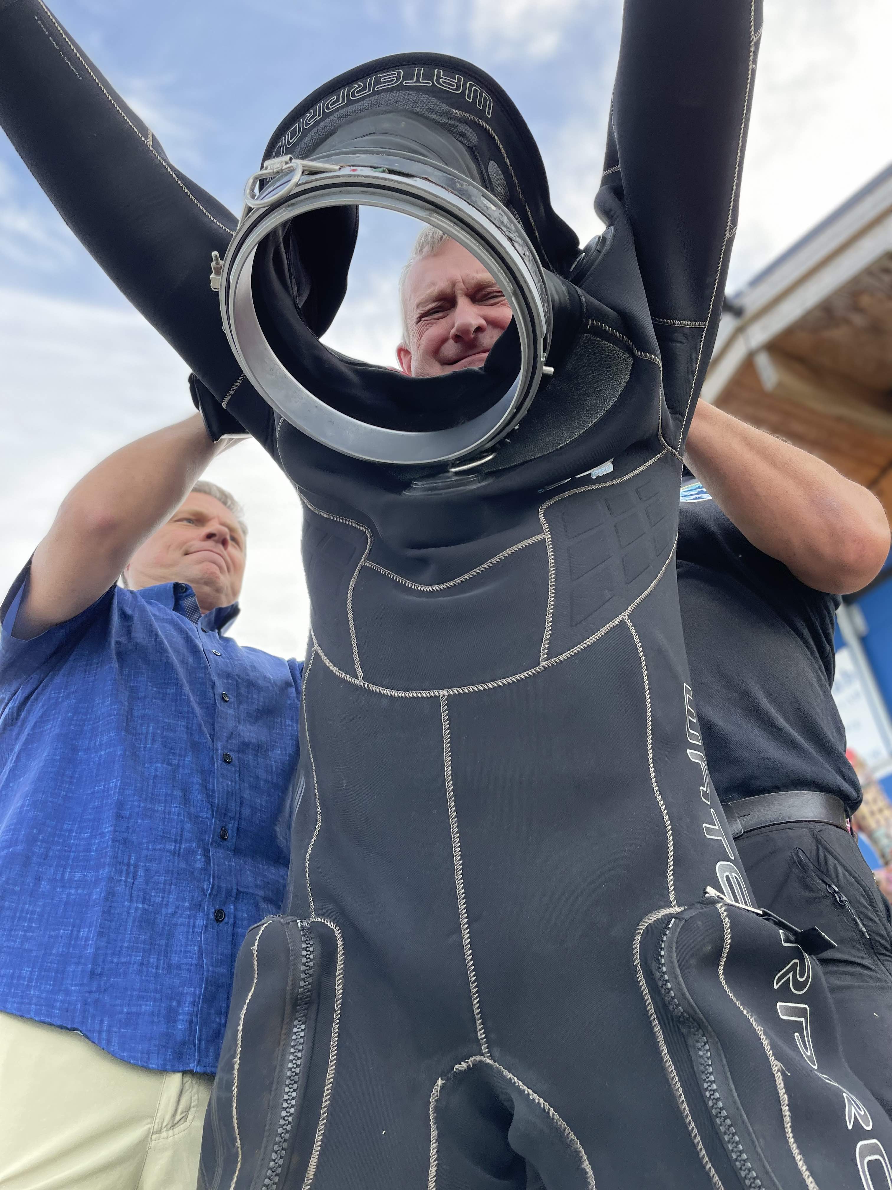 – Jag blev som en »Michelingubbe« när fötterna flöt upp. Det var första gången med en sådan tung dykarutrustning – någon sådan är jag inte van vid.