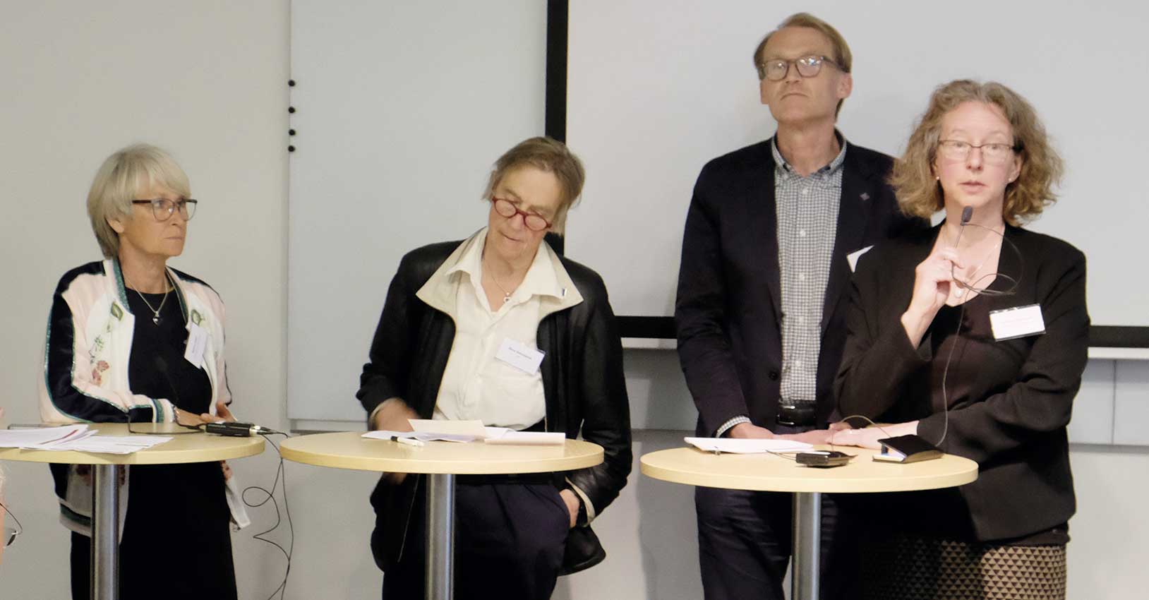 Barbro Edén, Sahlgrenska universitetssjukhuset, Nina Rehnqvist, SBU:s nämnd samt Johan Styrud och Yvonne Dellmark, båda Stockholms läkarförening, på Läkartidningens seminarium om värdebaserad vård. Foto: Ulf Jansson