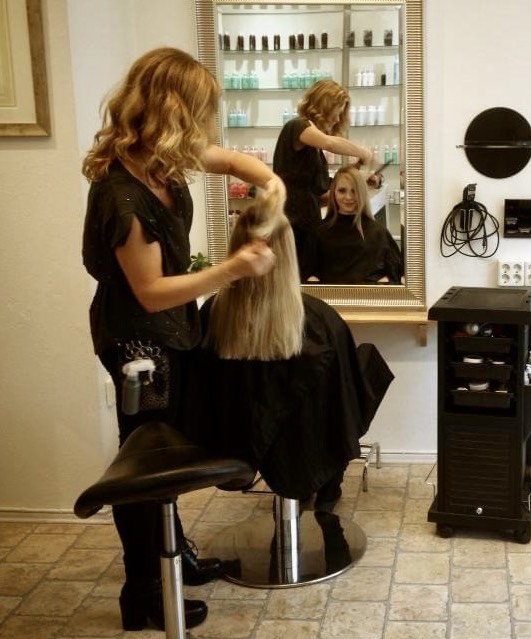 Annika Nyström under sin tid som frisör i Gävle. Foto: Privat.