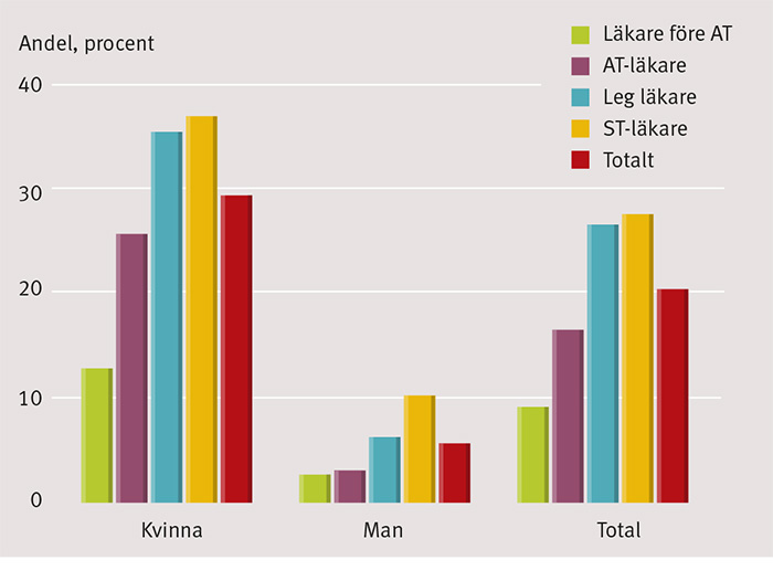 Kön, ålder och etnisk tillhörighet är de vanligaste diskrimineringsgrunderna. Skillnaden mellan kvinnor och män är påtaglig. 30 procent av de kvinnliga underläkarna uppger att de upplevt sig diskriminerade på grund av kön. Bland de manliga underläkarna är det bara 6 procent.