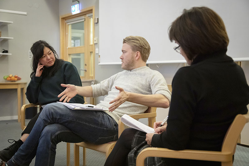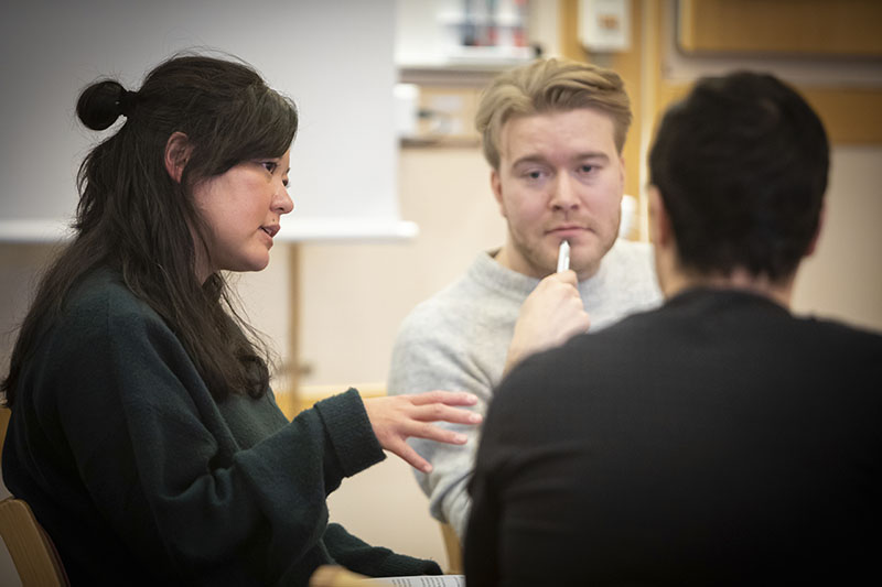 Grupperna gör sedan en etisk analys av ett fall efter en mall från Karolinska institutet. Det handlar om att hitta det etiska problemet, ta fram relevanta fakta, beskriva vilka handlingsalternativ som finns, vilka som berörs och hur. Sonja Kvint beskriver det som ett slags strukturerat sätt att ta ett kliniskt beslut.