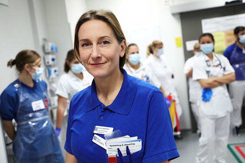 Malin Jonsson Fagerlund, överläkare i anestesi och intensivvård, är sektionsområdesansvarig för bland annat traumaenheten på Karolinska universitetssjukhuset Solna. Hon betonar vikten av att jobba effektivt i team.