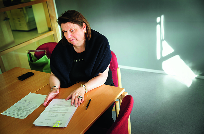 »En 6:6a-framställan är ett skarpt verktyg«, säger arbetsmiljöinspektören Lise-Lotte Hamfelt. »Det är viktigt att man som skyddsombud först har gett arbetsgivaren en möjlighet att lösa problemen.« Foto: Ola Torkelsson