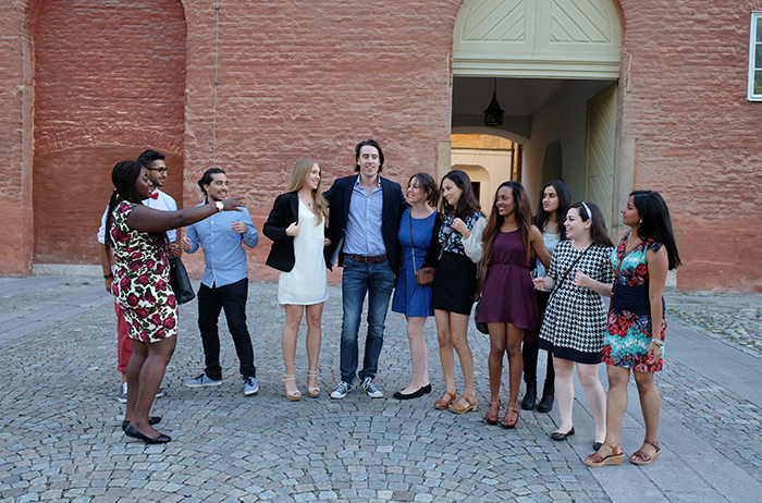 Sedan ett par år bjuder landshövdingen in sommarpraktikanterna från Wroclaw till en middag på Västerås slott. Från vänster: Maame Kumah, Leith Al-Amide, Samuel Galindo, Anna Marcinkiewicz, Fredrik Isberg, Karolina Domanski, Helen Kim, Terhas Heaven Menghis, Heba Alblebish, Joanna Nielsen och Deepali Nigam.