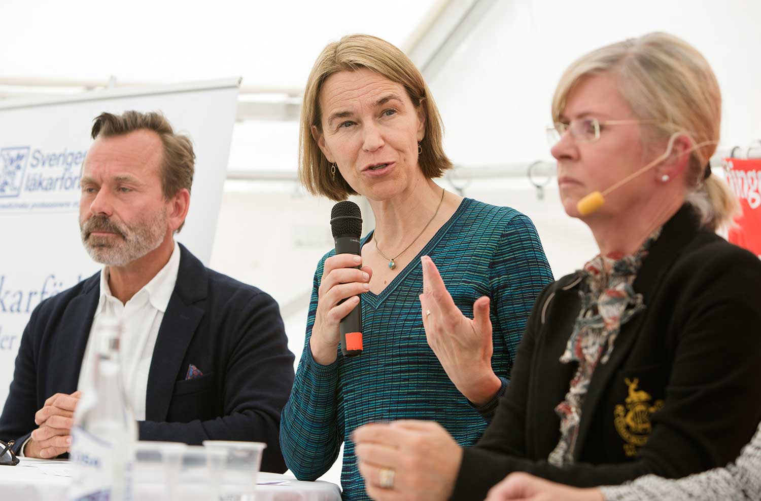 När det gäller hur problemen ska lösas menade generaldirektörerna att man behöver arbeta på många fronter samtidigt. Det svaret gjorde Elin Karlsson, vice ordförande i Sjukhusläkarna, lite bekymrad.