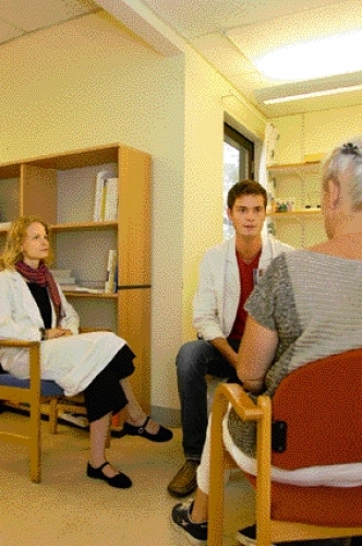 Det är distriktsläkaren Christina Malm som ställer frågan till läkarstudenten Jeuline Cavlin. Det är en onsdag i början av september och studenterna har terminens första praktikdag. Trots ett långt sommarlov har Jeuline Cavlin inga problem med att återkalla vad hon lärde sig förra terminen.