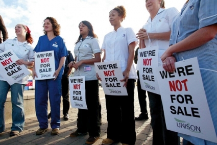 Den offentligt finansierade sjukvården i England, National Health Service, NHS, genomgår den största förändringen någonsin. Labourregeringen önskar fler och privata vårdgivare, inför ökad konkurrens, resultatbaserad betalning och större valfrihet för patienter. Inom vårdsektorn är protesterna stora.