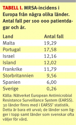 – Vi kan inte säga att ett visst ingrepp generellt sett innebär en ökad risk, utan bör i stället peka på att vissa länder har större problem med MRSA än andra.