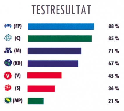 Igår presenterade Läkartidningen sin valkompass på Internet. Kompassen avslöjar hur dina åsikter stämmer överens med de olika riksdagspartiernas. Upphovsmännen bakom det politiska självtestet är statsvetarna Stig-Björn Ljunggren och Tommy Möller samt Christer Isaksson, författare och debattör. Testet är uppdelat i en allmänpolitisk del med 25 påståenden att ta ställning till och en rent sjukvårdspolitisk del med tio påståenden. I slutet av testet gäller det också att gradera vilken vikt man tillmäter de olika frågorna. Sedan spottar testet ur sig en skala som ska spegla ens politiska preferenser.