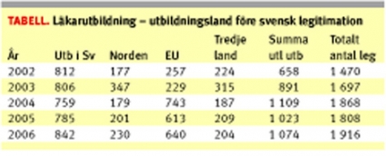 I dag är legitimationsprocessen lång för läkare från tredje land, inte sällan tre-fyra år, vilket kan jämföras med två veckor för läkare från EU-länder.