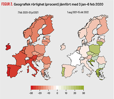 I olika länder iakttogs varierande grad av social distansering under pandemin, inte minst över tid [3]. Sverige uppmärksammades i början av pandemin, inte minst av internationella medier, för att man inte införde lika omfattande smittskyddsåtgärder som andra EES-länder och inte heller minskade den geografiska rörligheten lika mycket [4, 5].