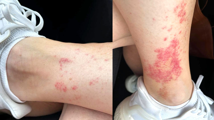 En 53-årig frisk kvinna hade de tre senaste gångerna hon spelat golf fått stora röda utslag på höger ankel och underben (Figur 1). Utslagen gav inte upphov till vare sig svullnad eller klåda, inte heller förelåg feber eller sjukdomskänsla.