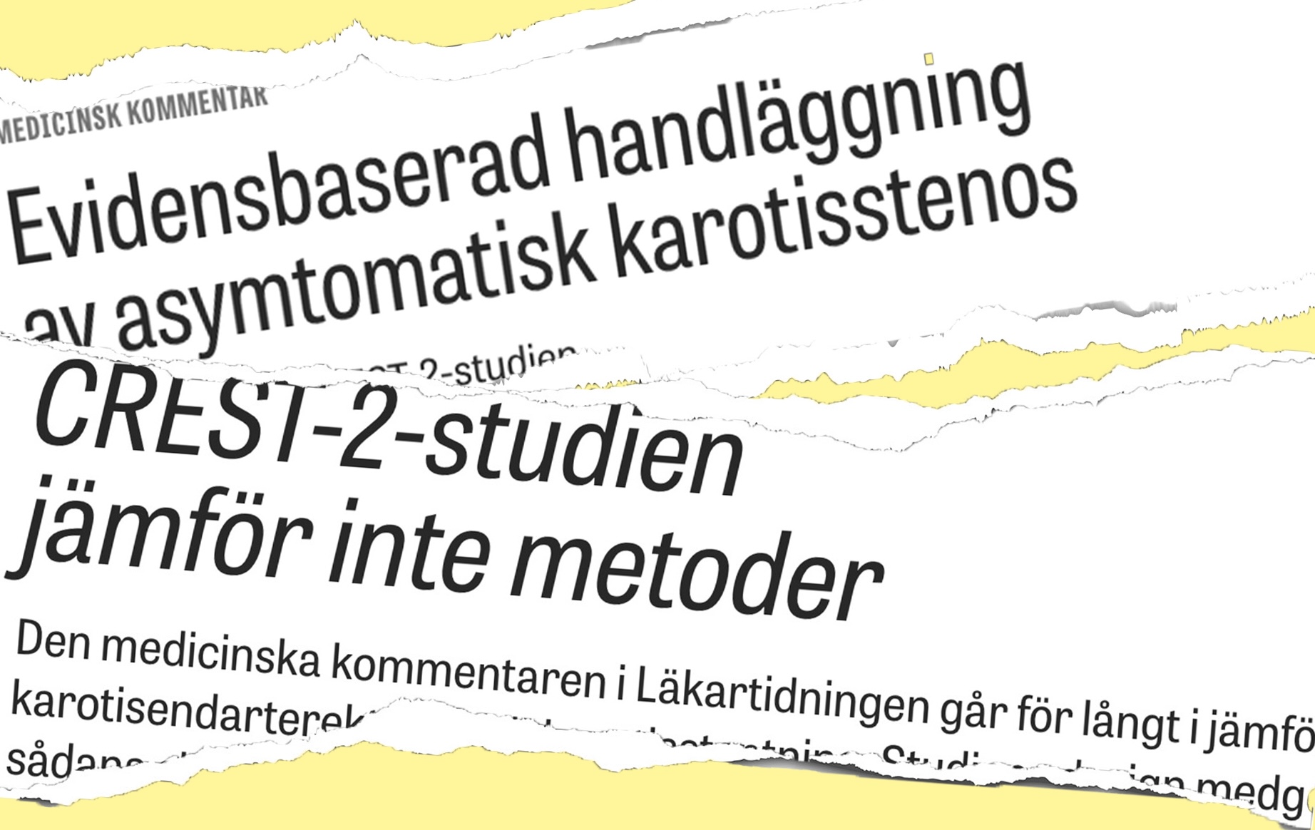 I den medicinska kommentaren »Evidensbaserad handläggning av asymtomatisk karotisstenos« ges en välkommen genomgång av studien CREST-2 (Carotid revascularization and medical management for asymptomatic carotid stenosis trial) [1]. Vi delar uppfattningen att bästa moderna medicinska behandling är effektiv och ska utgöra basen i behandlingen. Däremot drar författarna längre slutsatser än vad studiens design och data medger, särskilt i en svensk kontext.