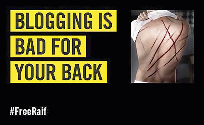 Fallet med den saudiske bloggaren Raif Badawi, som dömts till tio års fängelse och 1 000 piskrapp för att han startat ett internetforum om mänskliga rättigheter, demokrati och kvinnors rättigheter, har väckt stor uppmärksamhet. Piskrappen skulle delas ut 50 åt gången varje vecka i 20 veckor med start 9 januari. Veckan därpå avrådde läkare från en ny omgång för att hans skador inte var läkta.