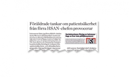 Björn Zackrisson, medicinsk chef i Capio Sjukvård Norden, kommenterar i Läkartidningen 17/2006 (sidan 1342), under rubriken »Föråldrade tankar om patientsäkerhet från förra HSAN-chefen provocerar«, min debattartikel i ett tidigare nummer av Läkartidningen.