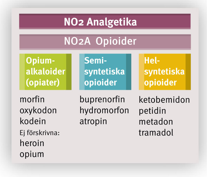 Både DSM och ICD hade begreppet opiater i sina allra första versioner (1952 respektive 1948), men redan på 1980-talet bytte DSM till »opioidberoende«, en ändring som missades vid översättningen till svenska. Begreppet opioid översattes till opiat i den svenska versionen. ICD bytte till »opioidberoende« först 1997, men även då missades det i översättningen till svenska. I ATC-registret [1] hanteras opiater som en undergrupp till den större gruppen opioider (Figur 1). Bland opiaterna finns vid sidan av heroin och opium ett antal farmaka som förskrivs. Alla opioider – opiater (opiumalkaloider) såväl som hel- och semisyntetiska opioider – är undergrupper till den överordnande gruppen analgetika.
