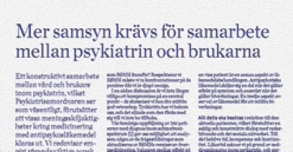 Psykiatrisamordnaren ser enligt uppgift »ett konstruktivt samarbete mellan vård och brukare inom psykiatrin« som väsentligt. Föreligger verkligen i nuläget förutsättningar för en samsyn mellan RSMH och svensk psykiatri? Jag ansluter mig helt till kollegorna Eva Lindströms och Sten Levanders förbehåll, framfört i den nämnda artikeln i Läkartidningen, att »vi kompromissar inte beträffande vetenskaplig kunskap«.