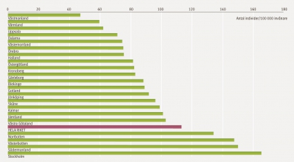 Ser man till antalet unika individer som tvångsvårdats under 2010 per 100 000 invånare borde vården inte variera så mycket. Men det är just det den gör. I Stockholms läns landsting vårdades drygt 160 individer per 100 000 invånare medan antalet tvångsvårdade i grannlänet Västmanland uppgick till enbart drygt 40/100 000. År 2010 var det alltså cirka fyra gånger så hög andel av befolkningen som tvångsvårdades i Stockholm som i Västmanland. Självfallet är det inte skillnad i förekomst av allvarlig psykisk störning som är förklaringen, sanningen är nog snarare den att ribban ligger på olika höjd och att bedömningarna varierar på ett betänkligt sätt.