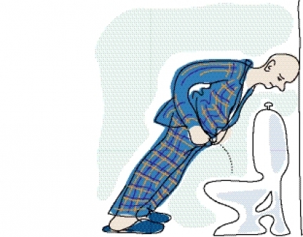 Vi vet inte omfattningen av detta fenomen vid prostataförstoring – framåtlutning vid vattenkastning med åtföljande stöd mot väggen med möjliga handavtryck!