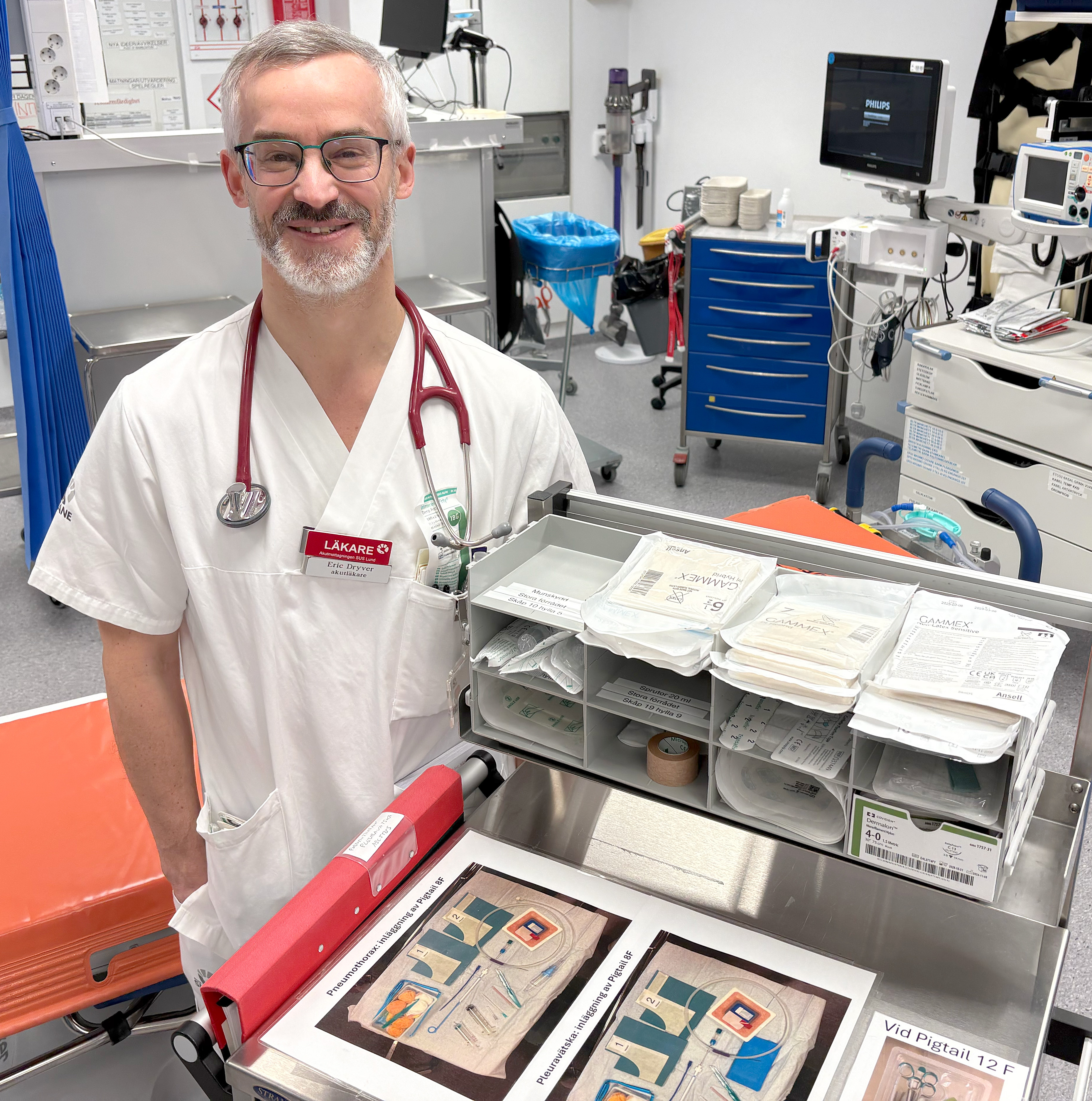 Eric Dryver, med dr och överläkare, VO internmedicin och akutsjukvård, Skånes universitetssjukhus Lund, är en av författarna till »ABC om Pleuratappning och dräninläggning«.