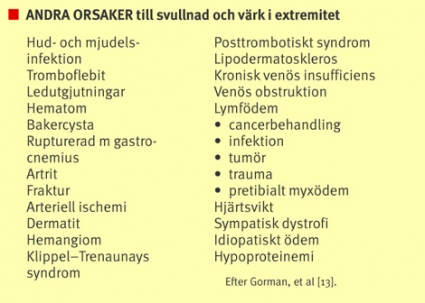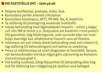 Vid symtom såsom svullnad eller smärtor i benen måste man alltid överväga om ventrombos kan vara orsaken och ta ställning till behov av utredning.