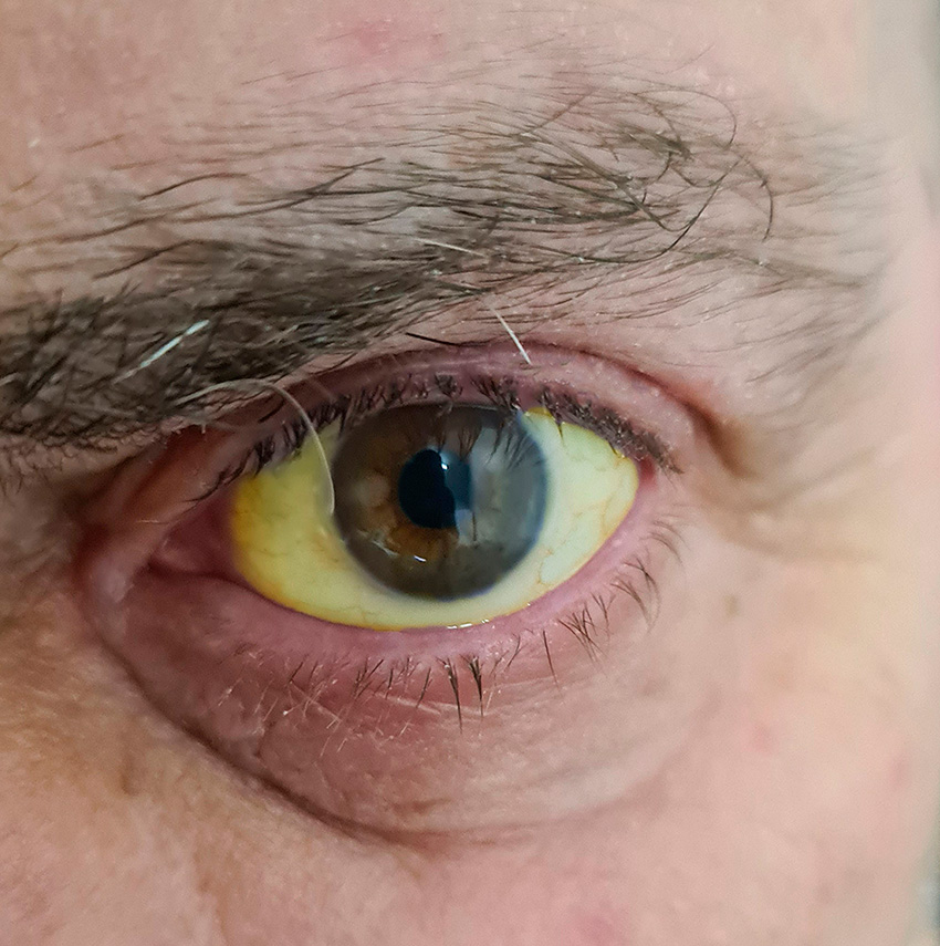 Gultonad sklera.