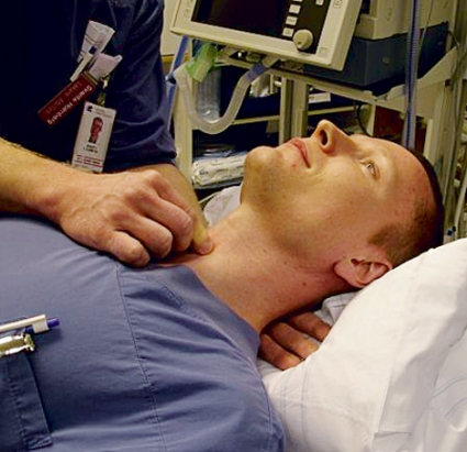 Intubation och extubation. Efter det att patienten sövts inväntar man effekten av muskelrelaxerande läkemedel utan att ventilera patienten. Vid RSI är det brukligt att ha ledare i endotrakealtuben vid intubation, men det finns inga studier som stöder detta [26]. Det är däremot visat att Eschmannledare är bättre än vanlig ledare vid intubation under pågående krikoidtryck eller då insynen i larynx är begränsad [27, 28]. Krikoidtrycket avlägsnas först efter det att man verifierat att tuben är placerad i luftvägen genom auskultation av lungfält med samtidig förekomst av andningssynkrona variationer i endtidal koldioxidhalt [29].