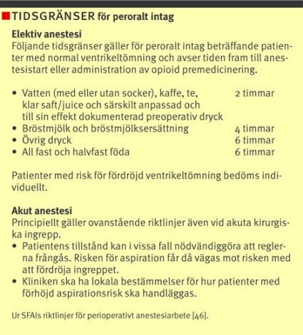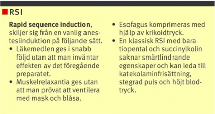 Situationer där RSI är aktuell innebär ökad risk för patienten. Om den förhöjda aspirationsrisken beror på ofullständig fasta ska nytta och risker med att senarelägga sövningen värderas.