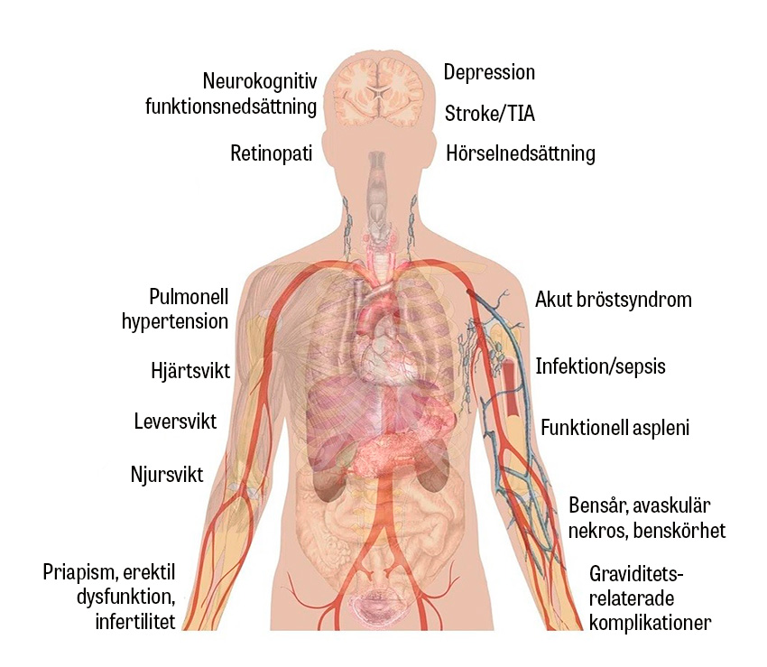 Sicklecellsjukdom är en allvarlig kronisk sjukdom med betydande morbiditet och förkortad livslängd. Patienterna kan drabbas av såväl vanliga sjukdomar som komplikationer relaterade till sjukdomen. De sistnämnda kan drabba alla kroppens organsystem. För läkare är det viktigt att snabbt identifiera patienter med sicklecellsjukdom som söker med akuta besvär och skyndsamt påbörja handläggningen.
