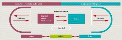 Figuren ovan illustrerar att den konkreta kliniska handläggningen av enskilda äldre personer kan beskrivas i relation till två olika perspektiv: