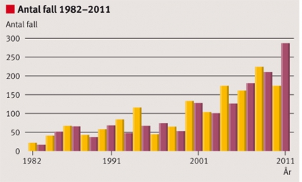Under 2011 utvecklade 287 personer i Sverige sjukdomen TBE, fästingöverförd encefalit, efter att ha blivit fästingbitna. Det är den högsta TBE-incidensen under något enskilt år som hittills registrerats av Smittskyddsinstitutet (Figur 1). Även Tyskland, Österrike och Finland hade osedvanligt många TBE-fall under 2011 [1-4].