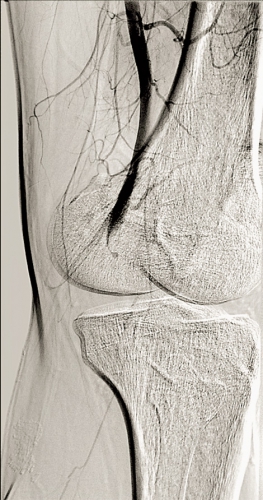 Diagnosen ställs med duplexundersökning eller angiografi. Man bör göra en dynamisk undersökning då patienten plantarflekterar i fotleden i liggande ställning eller ställer sig på tå, varvid det mediala gastrocnemius-huvudet och senan sträcks med ocklusion av artären (Figur 1). Behandlingen är öppen operation med bakre åtkomst där komprimerande strukturer delas. Eventuellt behöver den förlängda artären förkortas, och om sekundära degenerativa förändringar eller poststenotisk aneurysmutveckling föreligger kan en vengraft behöva sys in.