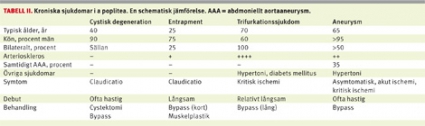 Avsikten med den här översikten är att summera de sjukdomstillstånd som kan drabba a poplitea (Fakta 1).
