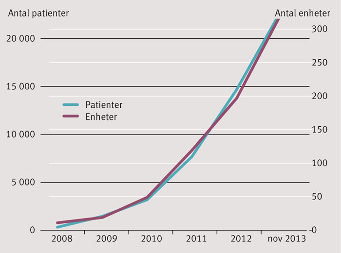 Figur 2. Kumulativt antal patienter och enheter i BOA-registret.