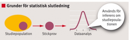Vi illustrerar nedan några grundläggande koncept för statistisk slutledning (se även Figur 2).