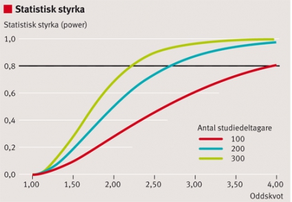 Att genomföra en underdimensionerad studie med otillräcklig statistisk styrka är slöseri med resurser och kan leda till den felaktiga slutsatsen att det inte finns ett »sant« samband mellan en exponering och ett utfall.