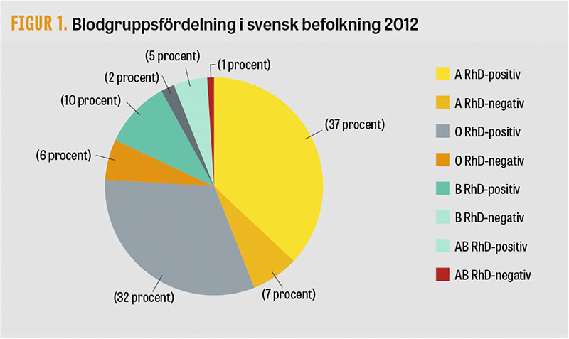 Även vid normal sjukvårdsaktivitet är det en stor efterfrågan på det som benämns akutblod, erytrocyter av blodgrupp O RhD-negativ, till bloddepåer på operations- och akutavdelningar, mindre sjukhus och privata sjukhus samt ett ökande behov till helikoptrar och ambulanser. Det är bara 6 procent av blodgivarna som har blodgrupp O RhD-negativ vilket gör att det finns en begränsad tillgång som måste prioriteras (Figur 1). I akuta lägen med många skadade är det mycket väsentligt att ha en rutin för säker identitetsmärkning, och att man så snart som möjligt gör blodgrupperingar för att kunna använda blod från alla blodgrupper.
