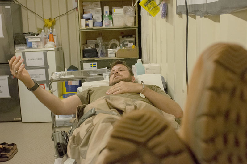 Försvarsmakten har mer än 500 godkända bloddonatorer (bilden är godkänd för publicering). Foto: Försvarsmakten
