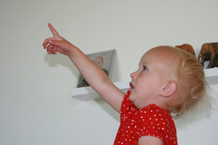 De symtom som konsekvent återkommer i studier är bl a relaterade till bristande förmåga att utveckla ömsesidighet i samspel och kontakt med andra, dvs förmåga till delad uppmärksamhet (joint attention) [11]. Sådan delad uppmärksamhet kan vara initierad av barnet eller den som barnet är i samspel med. Delad uppmärksamhet handlar om att två personer visar tydliga tecken på att samtidigt uppfatta en yttre händelse eller ett föremål, t ex genom ögonkontakt eller genom simultant visad glädje eller förvåning över det som observerats (Figur 1). Denna förmåga anses vara grunden för att barnet ska kunna utveckla forsatta färdigheter för kontakt och samspel. Förmågan utvecklas stegvis från att barnet kan känna igen och hålla ögonkontakt med föräldern, ge svarsleende och under de följande månaderna utveckla kommunikation med pekning, gester, variation i joller och så småningom mer språk. Kunskapen om hur förmågan till delad uppmärksamhet utvecklas ger möjlighet att tidigt reagera när avvikelser finns.
