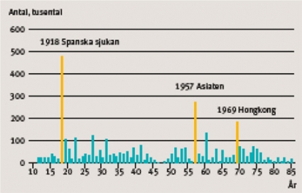 Ett sådant muterat virus kommer att ge pandemi, och det kan bana väg för lunginflammation och andra komplikationer hos sköra patienter, som vilket annat influensavirus som helst. Det skulle också, som spanska sjukan, kunna drabba huvudsakligen unga individer. Vi riskerar då dödsfall, men det är viktigt att minnas att de flesta under pandemin 1918–1920 dog av bakterieinfektioner som influensan banade väg för. Dessa kan vi i Sverige hantera med antibiotika i dag, men många andra länder, framför allt fattigare länder, är mycket sämre ställda. Om spridningen dröjer några månader kan vi också ha vaccin, och vi har redan antivirala läkemedel som kan lindra pandemiförloppet. Kanske har vi för första gången också möjlighet att på allvar begränsa spridningen av ett pandemivirus genom snabb identifiering av smittade och snabba åtgärder mot smittspridning, bl a genom profylax och behandling med antivirala läkemedel och snabb vaccinutveckling.