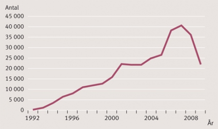 Antalet prov från personer som provtagits under arbetstid har ökat under de senaste 15 åren (Figur 1). Uppskattningsvis tas ca 50 000 prov per år för drogtestning på svenska arbetsplatser, vilket innebär bl a att hundratals individer kan erbjudas hjälp.