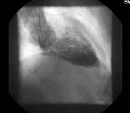 Angiografisk kontroll ca 3 månader senare visade normaliserad vänsterkammarfunktion (Figur 3 C–D) med regress av både den apikala dyskinesin och mitralklaffläckaget. EKG i samband med kontrollangiografin visade regress av ST-höjningarna, normalisering av R-vågsprogressionen och tillkomst av T-vågsinversion (Figur 2).