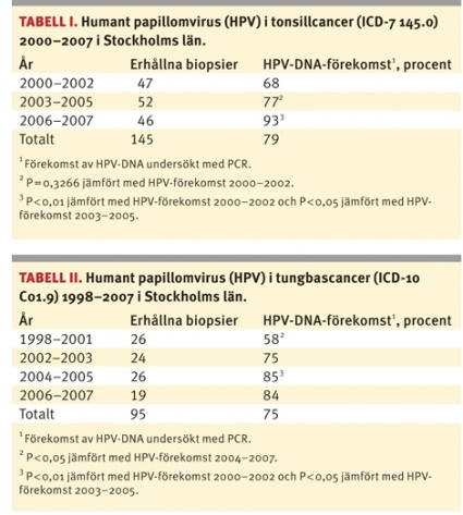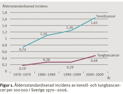 Vi har tidigare i Läkartidningen beskrivit en parallell 3-faldig ökning av tonsillcancerincidensen och ökningen av HPV-positiva tonsillcancerfall i Stockholmsregionen under perioden 1970–2002. Vår hypotes var att HPV var ansvarigt för denna utveckling [6].