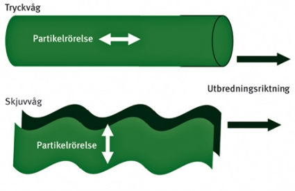 Fibroscanproben har en inbyggd vibrator och en ultraljuds-transduktor som skickar ut och tar emot ultraljud. Proberna finns i olika storlekar för barn och vuxna. Vibratorn alstrar en skjuvvåg med 1 mm amplitud. Skjuvvågor (shear wave) är lågfrekventa vågor som fortplantas genom fasta material men inte genom vätskor. De har låg amplitud och långsam hastighet jämfört med tryckvågor. I skjuvvågor är partikelrörelsen vinkelrät mot vågens rörelseriktning, varför vågen blir S-formad, i motsats till tryckvågor där partiklarna rör sig i samma riktning som vågen (Figur 1).