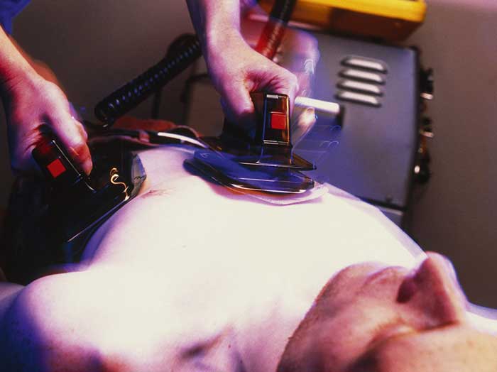 Det föreligger olika åsikter om energival. Vanligen ges chock med stegvis ökande energi till dess omslag sker. Alternativet är att ge högsta energi från början. Det senare alternativet ger lägre kumulativ energinivå, sannolikt lägre risk för hudsmärta och tar kortare tid i anspråk [4].