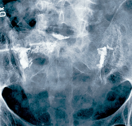 Den tredje diskuterade cementeringsmetoden är sakroplastik, som en möjlig behandling av osteoporotisk insufficiensfraktur i sakrum [15]. Dessa frakturer är ofta förbisedda, även om det rapporterats att närmare 2 procent av äldre kvinnor som lagts in på sjukhus på grund av ländryggssmärta har en sakral insufficiensfraktur [26]. Incidensen anses dessutom vara högre bland kvinnor som genomgått strålbehandling på grund av gynekologisk eller kolorektal cancer [26]. Slätröntgen missar ofta diagnosen, som vanligen ställs med skelettskintigrafi, datortomografi (DT) eller magnetkameraundersökning (MRT) [6]. Den vanligaste frakturtypen har beskrivits som en »H-fraktur«, ett benbrott med två lateralt om sakralforamina belägna vertikala frakturer som förbinds med en horisontell frakturskänkel, vanligen i S2-höjd [27]. H-fraktur ses i drygt 60 procent av fallen av insufficiensfraktur, medan unilateral vertikal fraktur återfinns i 19 procent av fallen [27].