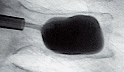 Grundprincipen bakom metoderna är att man genom en perkutant insatt kanyl fyller den frakturerade kotkroppen, eller fraktursystemet i sakrum, med bencement (polymetylmetakrylat) [7-14, 16, 17], så att fraktursystemet stabiliseras, ryggsmärtan reduceras och patientmobiliseringen underlättas. Vid vertebro- och sakroplastik cementerar man frakturerna i befintligt frakturläge (Figur 1 och 2), medan man vid kyfoplastik för in en tom ballong i kotan. Ballongen blåses sedan upp, och målet är att reducera felställningen i kotan före cementeringen (Figur 3). Denna teknik ter sig åtminstone i teorin tilltalande [14, 16]. För närmare beskrivning av metoderna hänvisas till kompletterande litteratur [6-14, 16, 17]. Såväl vertebro- som kyfoplastik kan ge upphov till en mängd komplikationer, såsom cementläckage i segmentella vener, cementläckage utanför kotan och in i spinalkanalen (med i enstaka fall parapares som följd), migration av cementkroppen efter kyfoplastik, revbensfraktur, septisk spondylit, lungödem och hjärtinfarkt. Det har hittills inte presenterats någon studie som visat att den ena metoden skulle ge färre komplikationer än den andra. Förekomsten av komplikationer måste också tas med i beaktande när man gör hälsoekonomiska utvärderingar av metoderna.