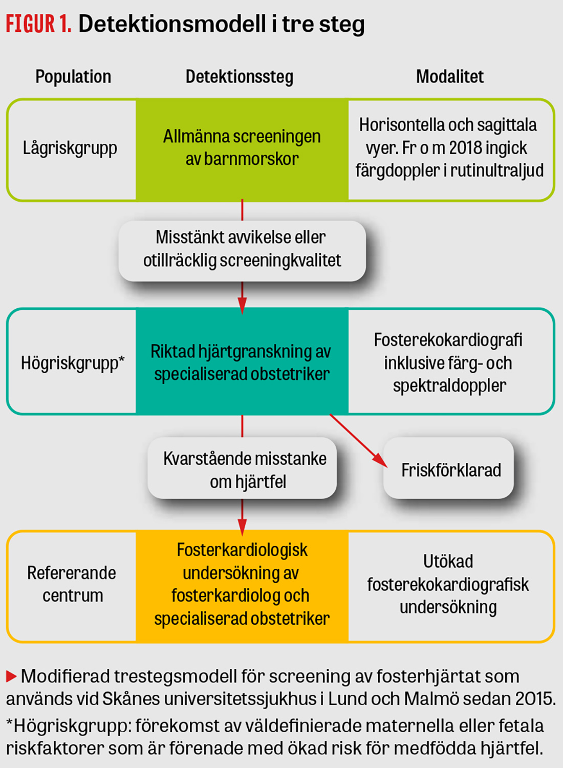 Den beskrivna screeningsmodellen säkrar hög sensitivitet för prenatal detektion men bidrar också till ett bättre utnyttjande av resurser. Hjärtfriska foster kan oftast friskförklaras redan i steg 2 av specialiserade obstetriker. Barnkardiologer träffar därmed nästan uteslutande fall med stark misstanke om hjärtfel för att fastställa diagnos, ge rådgivning samt tillsammans med obstetrikern planera uppföljning och förlossning. Detta är viktigt, eftersom det finns regional variation i tillgång till barnkardiologer i Sverige.